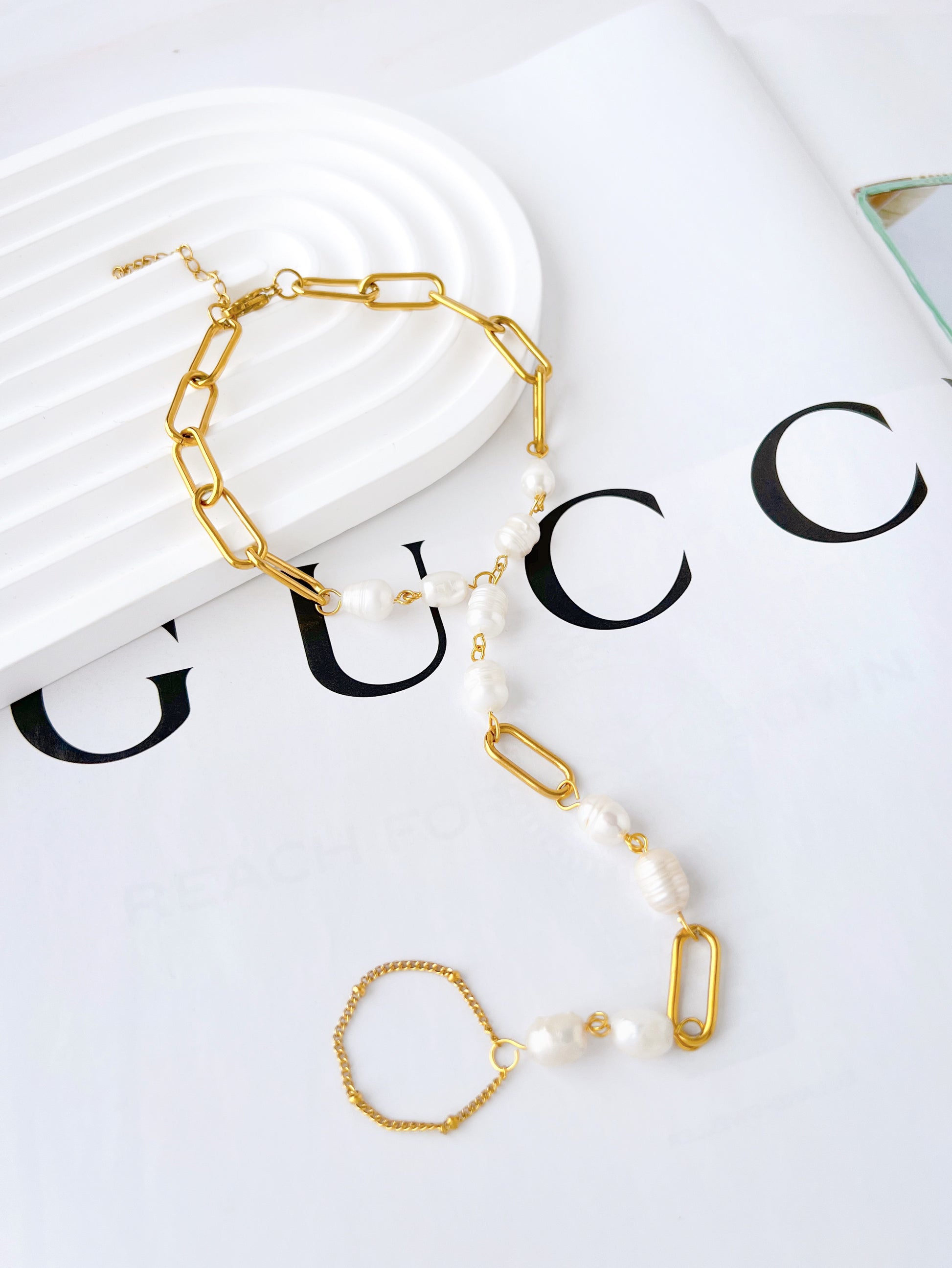 Pulsera de Perlas con Anillo